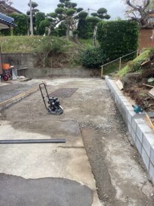 駐車場改修工事 2023.10.12お知らせ DCP PHOTO 枕崎市にて個人住宅のリフォーム工事の中で 駐車場改修工事。施主様から元請様への依頼で 駐車場を拡張するためにCB積み、掘削、砕石、 デッキコンと土間コンクリートを打設してきました。 エクステリア・外構工事は鹿児島県鹿児島市の栄翔技研|求人募集中 栄翔技研 〒899-2506 鹿児島県日置市伊集院町清藤1604 TEL:099-295-0637 ※営業電話お断り ツイート お知らせ 表層改良 資材置場と伊集院事務所 造成中 関連記事一覧 【年末のご挨拶】 出水市造成工事 薩摩川内市にて 薩摩川内市外構工事 鹿児島県鹿児島市の栄翔技研について デザインと機能をバランスよく取り入れた外構をお届け 伊集院事務所新築工事 出水市造成工事 未経験者歓迎!鹿児島市の土木・造成工事スタッフ募集|栄翔...